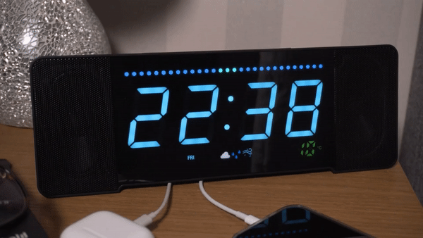 Easily set and schedule multiple alarms across times and days. You can also select from different alarm sounds. When your alarm is set you will see the red Alarm bell on the Doppler face.