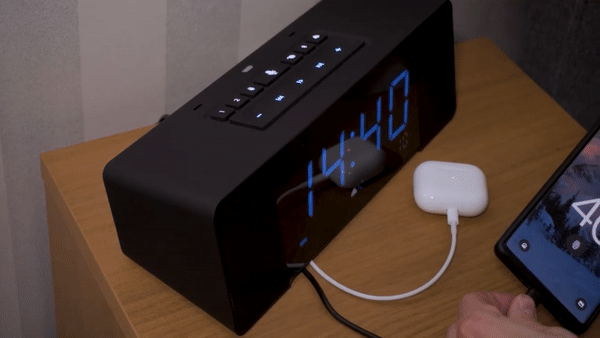 • Clean up your nightstand with charging for up to six devices. No need for extra outlets, extension cords, or plugging in your phone across the room. Plug in your smart phone, wireless headphones, tablet, smartwatch and more. The Doppler is also future proof with 3 of the USB ports being upgradeable to USB Type C. Order that upgrade any time and install it yourself easily.